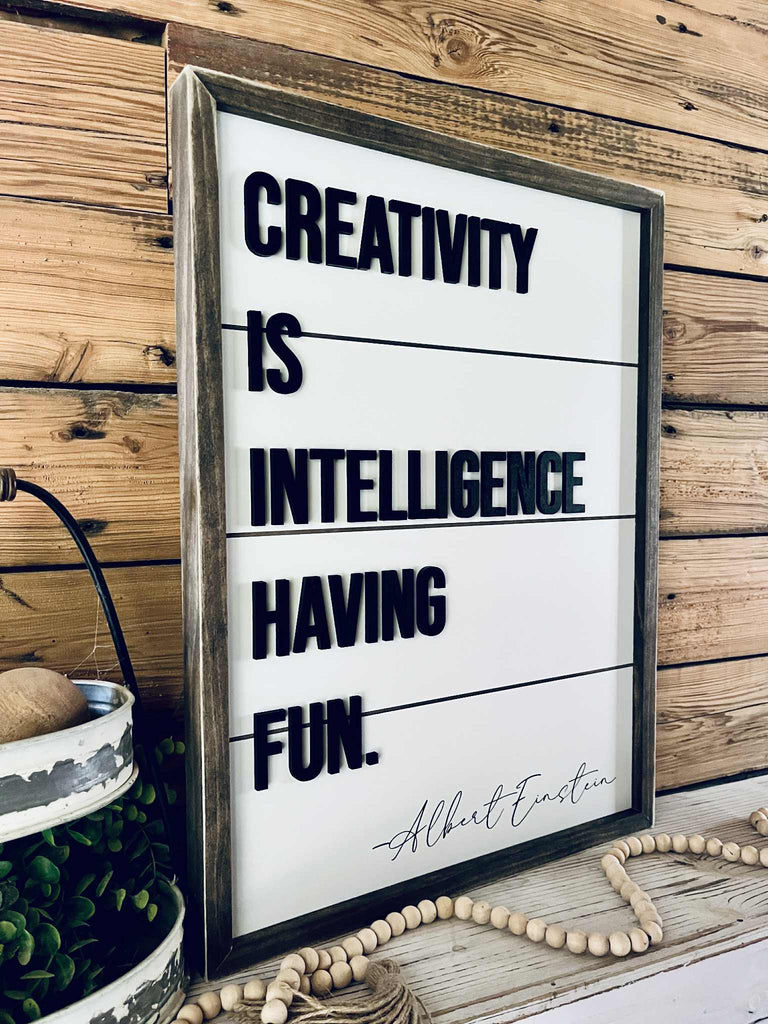 Albert Einstein Quote Sign – Creativity is Intelligence Having Fun Wall Art