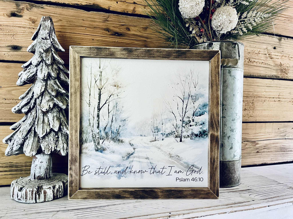 Be Still and Know Psalm 46:10 Sign – Farmhouse Winter Christian Wall Art