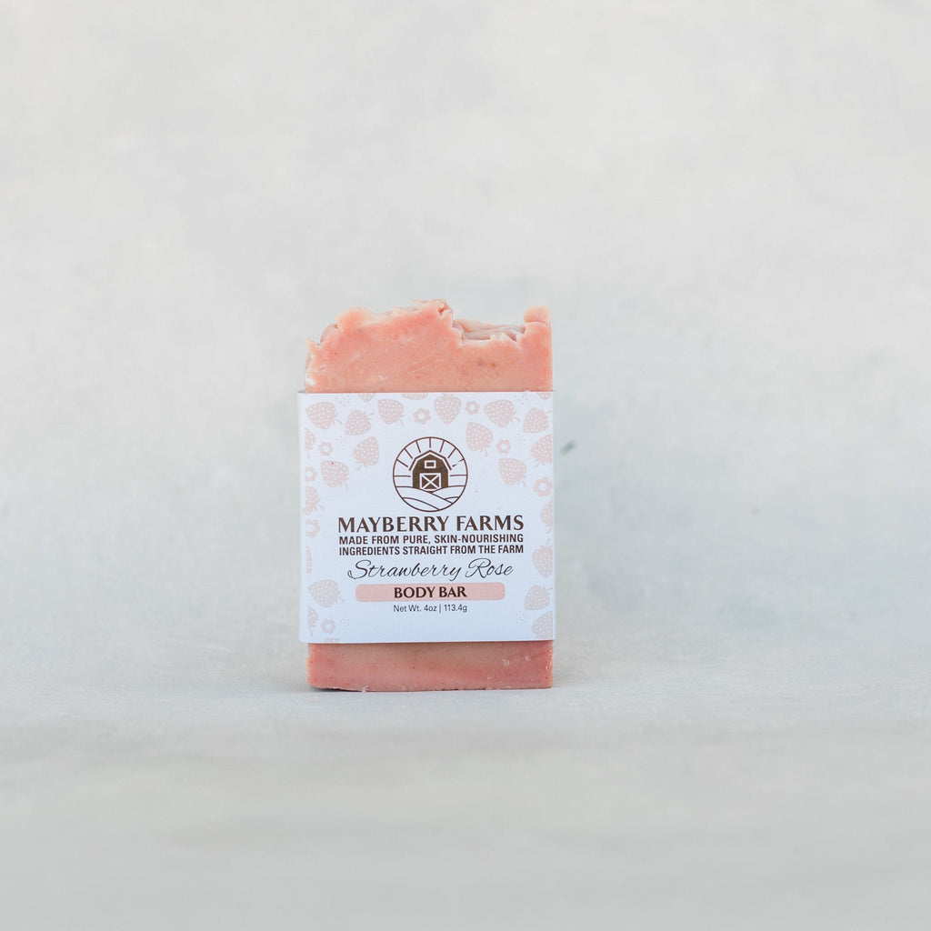 Strawberry Rose Body Bar — Our best-selling, farm-fresh soap with a gentle strawberry rose scent — pure comfort for your skin.