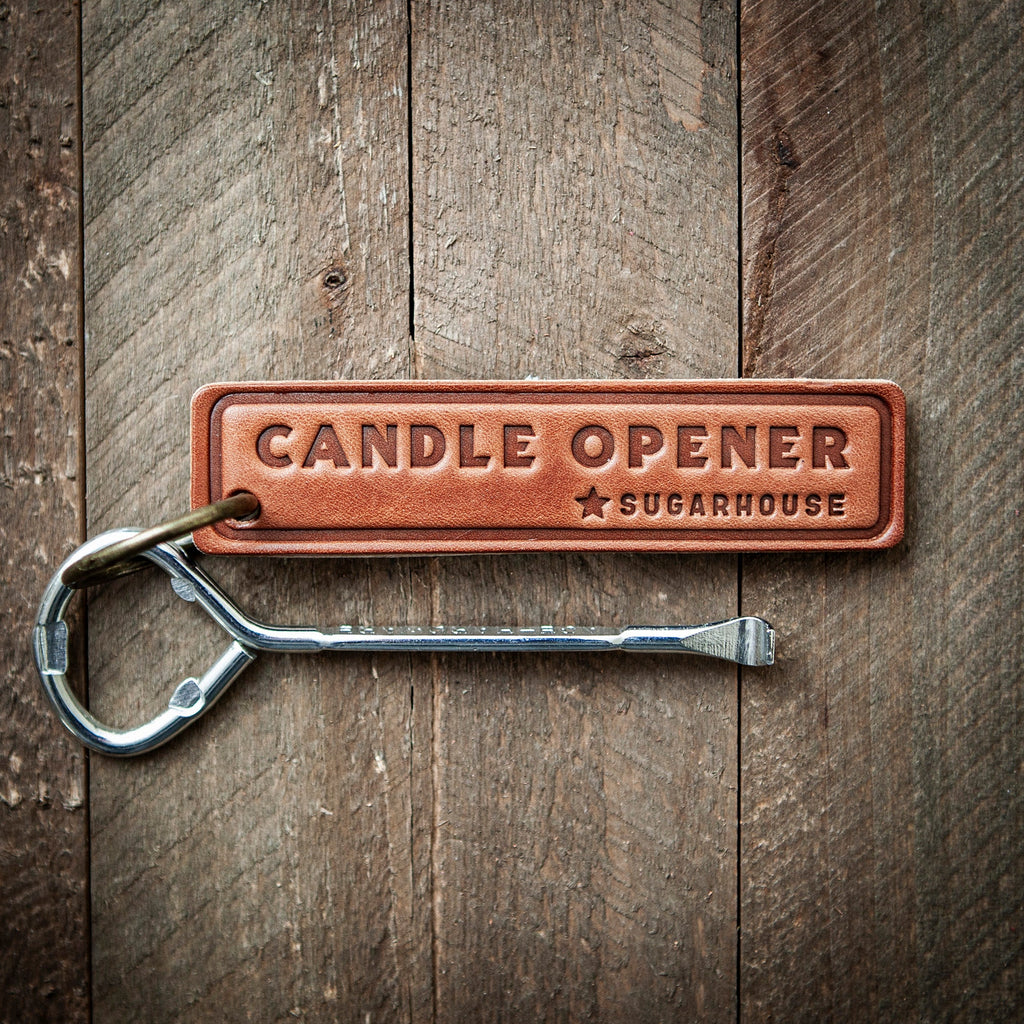 Candle opener with leather fob.