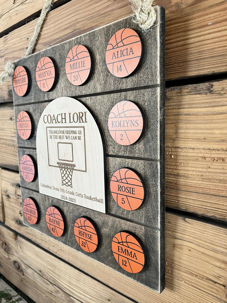 Personalized Basketball Coach Gift Sign with Player Name Basketballs – End of Season Team Thank You Plaque