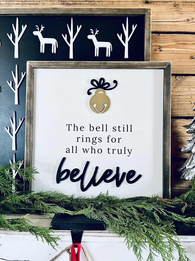 Farmhouse Christmas Believe Sign with Jingle Bell – Holiday Mantel & Wall Decor