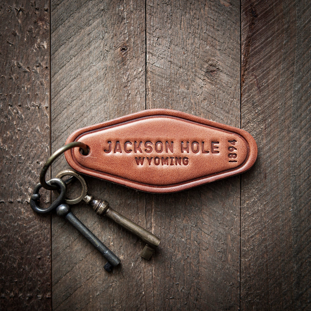 Jackson Hole Wyoming Leather Keychain Motel Style