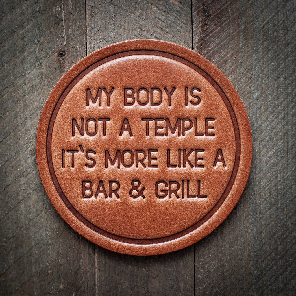 My Body is Not a Temple Leather Coaster