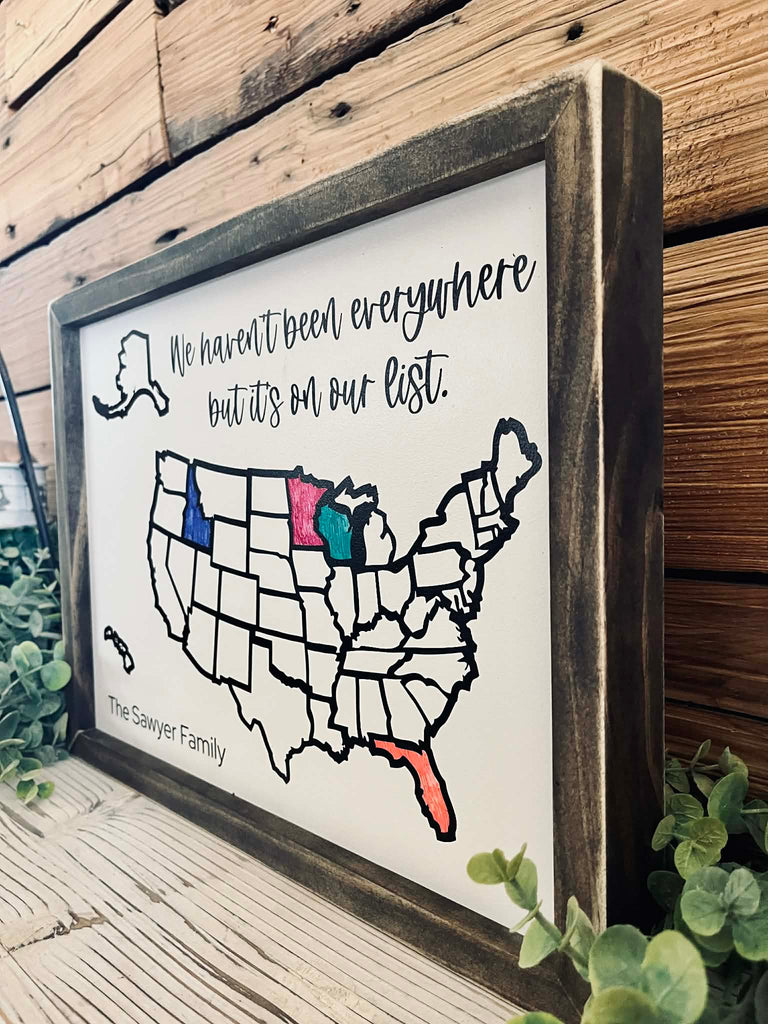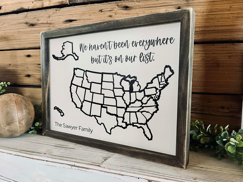 Personalized USA Travel Map Sign | Color-In Travel Tracker Gift