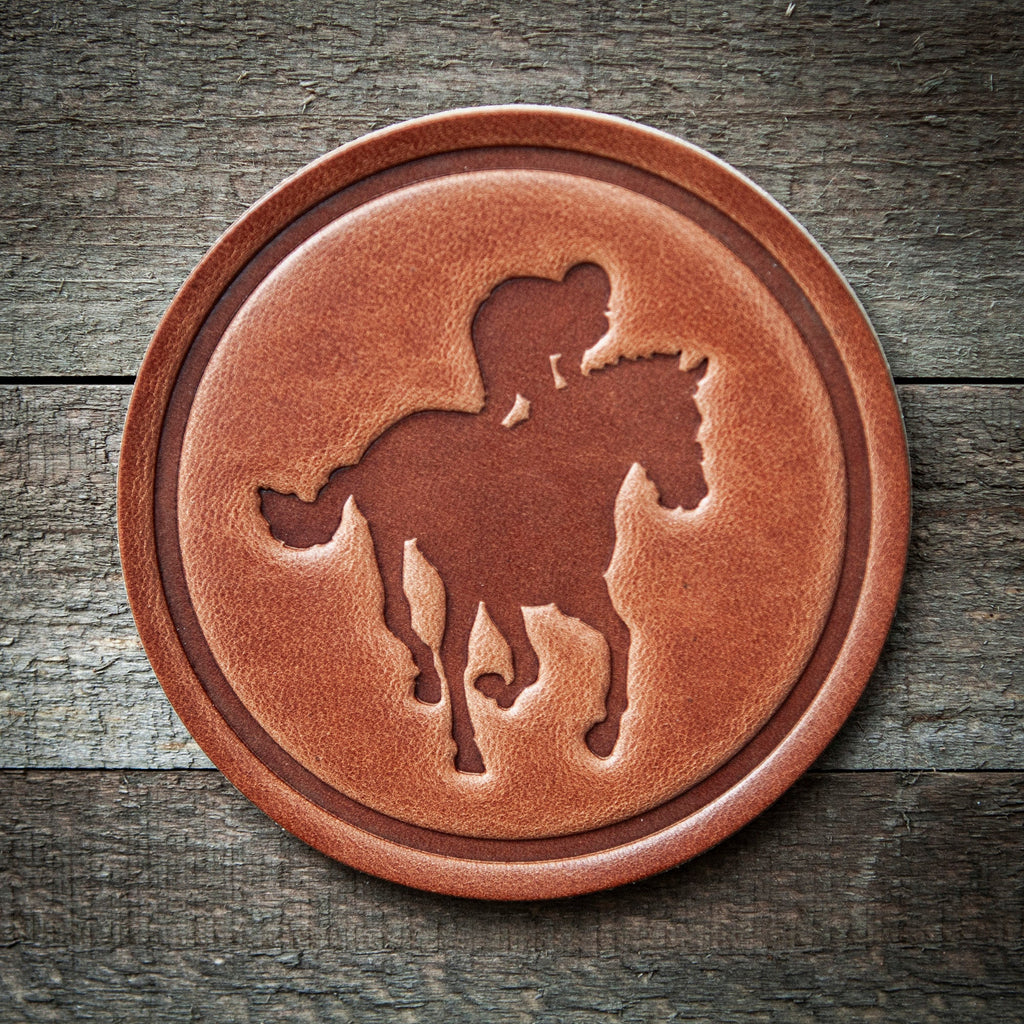 The perfect unique and surprising gift item! Our leather coasters are cut and pressed by hand from some of the thickest and finest harness leather available. They patina beautifully as they age. Mix and match a variety of styles to make a classic set of coasters that really says, "I picked these out just for you!"