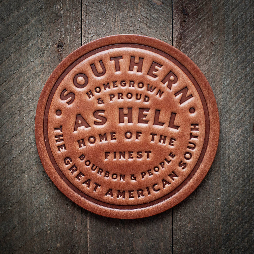The perfect unique and surprising gift item! Our leather coasters are cut and pressed by hand from some of the thickest and finest harness leather available. They patina beautifully as they age. Mix and match a variety of styles to make a classic set of coasters that really says, "I picked these out just for you!"
