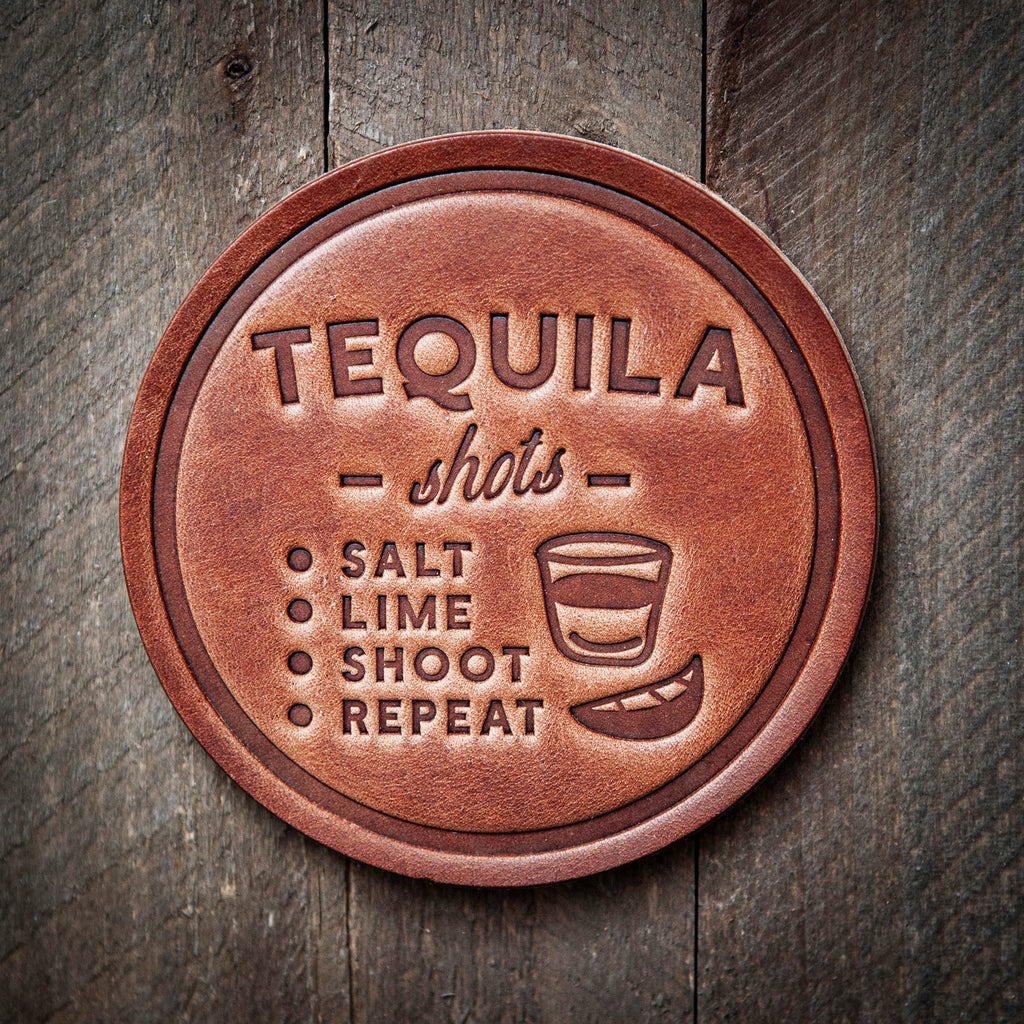 The perfect unique and surprising gift item! Our leather coasters are cut and pressed by hand from some of the thickest and finest harness leather available. They patina beautifully as they age. Mix and match a variety of styles to make a classic set of coasters that really says, "I picked these out just for you!"