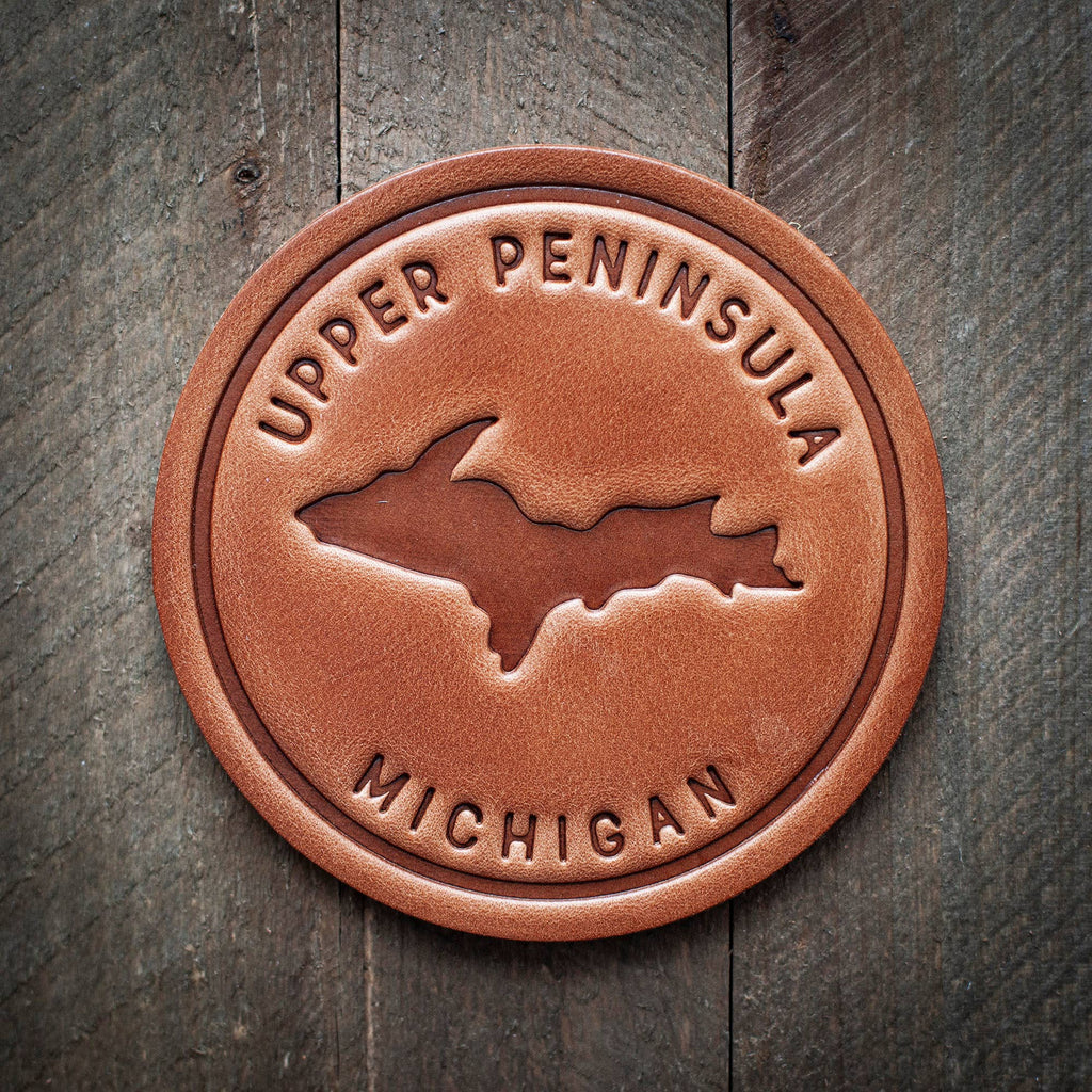 Upper Peninsula Michigan Silhouette Leather Coaster