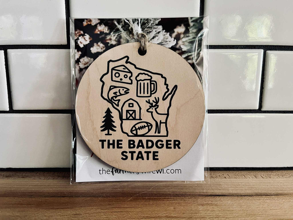 Wisconsin Ornament – The Badger State Wood Ornament, Maple Christmas Ornament, Wisconsin Gift