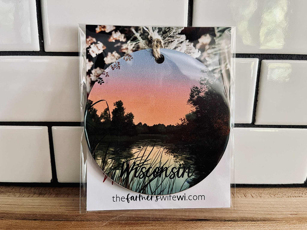 Bring the peaceful glow of a Wisconsin sunset to your home with this durable MDF wood ornament, UV printed for rich color and lasting detail.